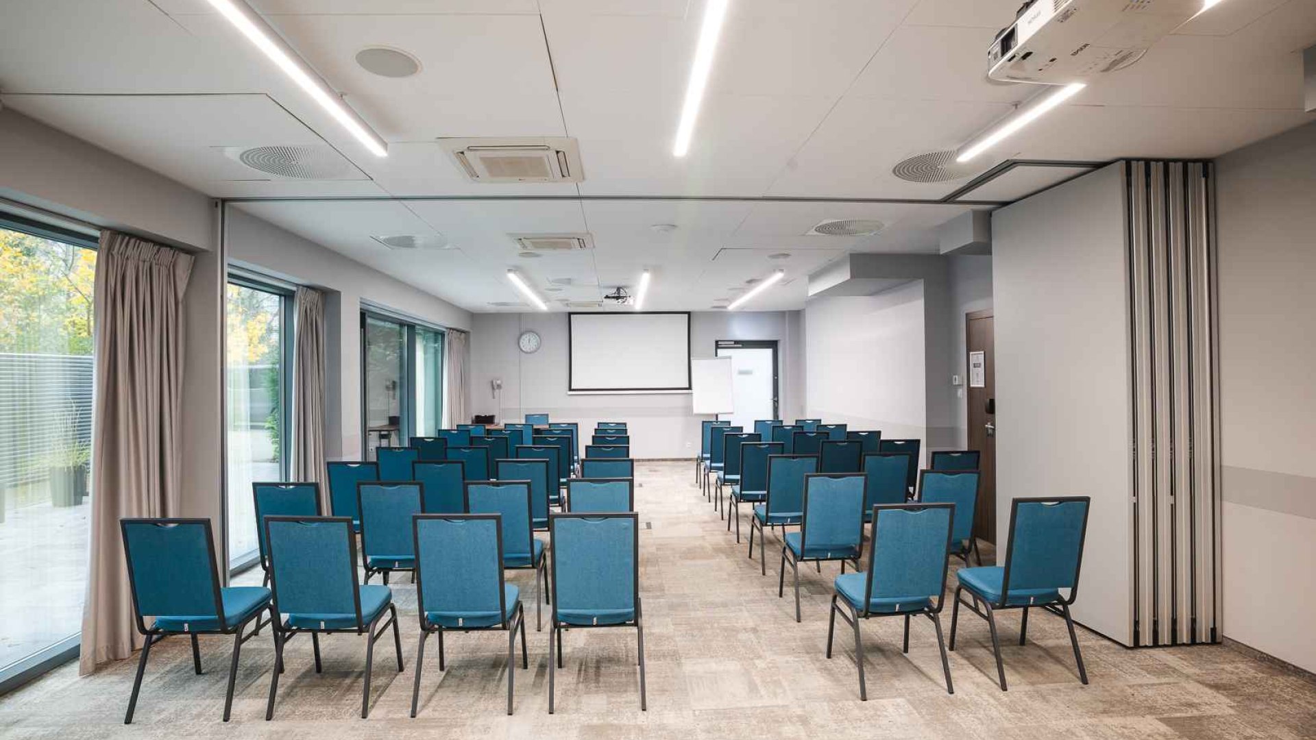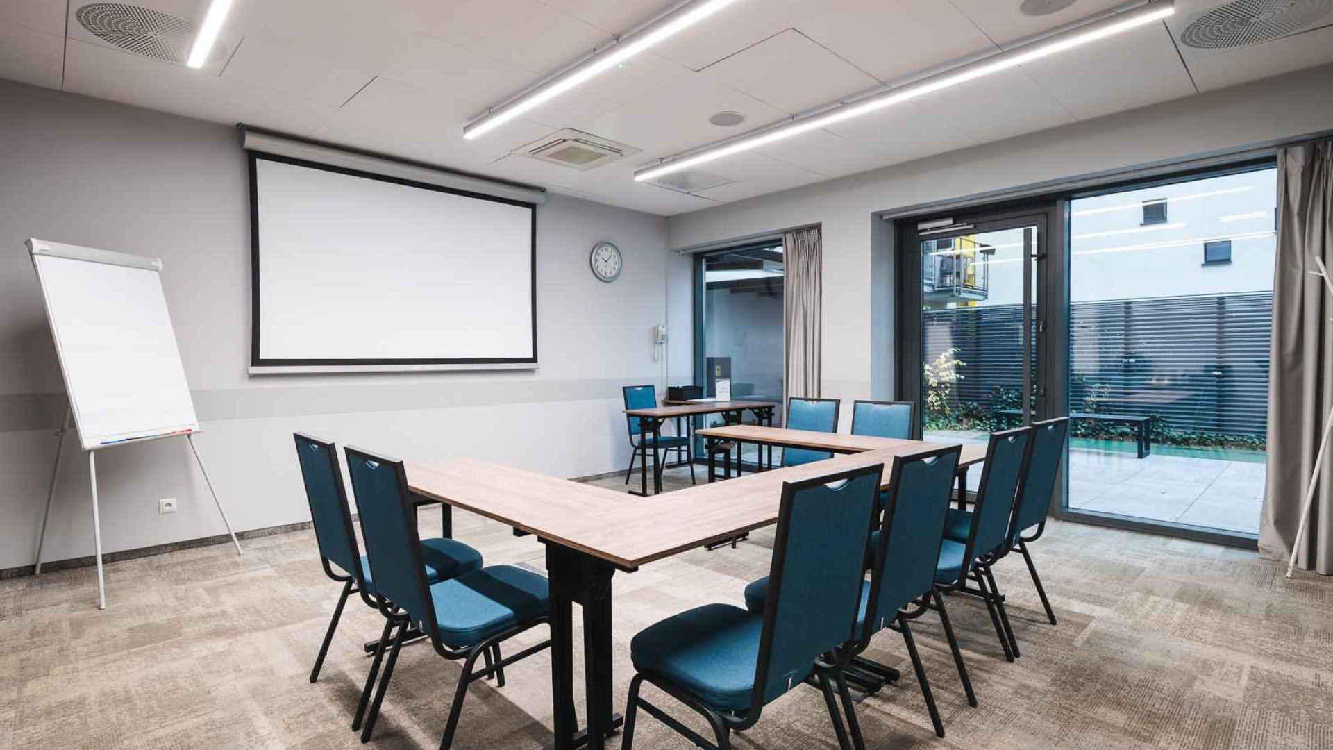 Die moderne Business-Infrastruktur des Focus Hotel Poznań umfasst drei professionelle Konferenzräume mit einer Gesamtfläche von 117 m², die auf Flexibilität und Komfort ausgelegt sind. Die Räume lassen sich individuell gestalten und an den Charakter der Veranstaltung anpassen – von kleinen Meetings bis hin zu größeren Konferenzen, Schulungen oder Seminaren. Alle Räume sind klimatisiert und mit moderner Medientechnik sowie kostenfreiem Highspeed-Internet ausgestattet, was eine reibungslose Organisation und höchsten Servicestandard garantiert. Jeder Konferenzraum verfügt über einen direkten Zugang zur Terrasse, die in der Sommersaison einen besonderen Rahmen für Cocktails, Networking oder entspannte Kaffeepausen bietet. Dadurch erhalten Business-Meetings eine einzigartige Atmosphäre, die Professionalität mit Kreativität und Austausch verbindet.
