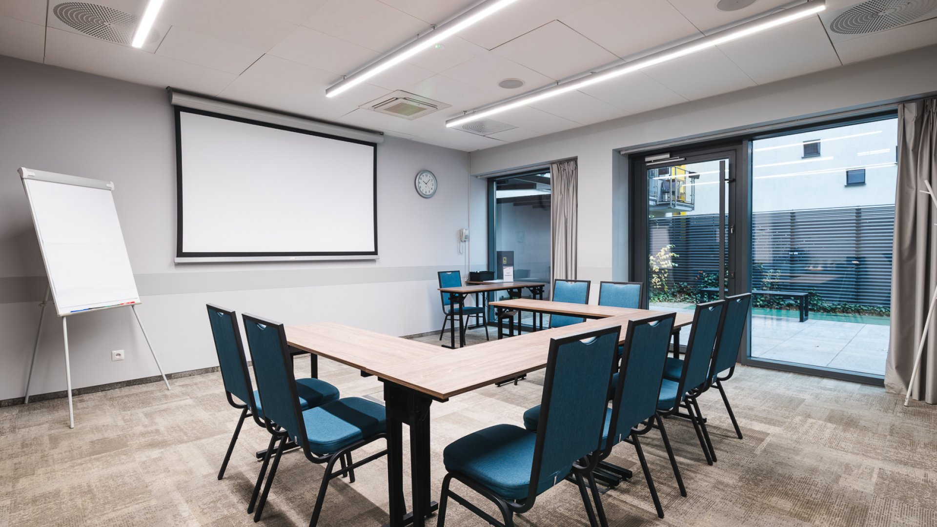 The modern business facilities of Focus Hotel Poznań offer three professional conference rooms with a total area of 117 m², designed with flexibility and comfort in mind. The space can be freely arranged and adapted to the nature of the event – from intimate meetings to larger conferences, training sessions, or seminars. All rooms are air-conditioned and equipped with modern multimedia technology and high-speed complimentary internet, ensuring smooth organization and the highest standard of service. Each conference room provides direct access to a terrace, which during the summer season becomes a unique venue for cocktails, networking, or relaxing coffee breaks. As a result, business meetings gain a distinctive atmosphere, combining professionalism with a setting that fosters creativity and interaction.