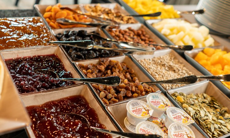 Every morning, the hotel restaurant serves a delicious buffet breakfast. It consists of as many as 85 different products, including a wide selection of hot dishes, quality cold cuts and cheeses, fresh fruit and vegetables, desserts and much more.
