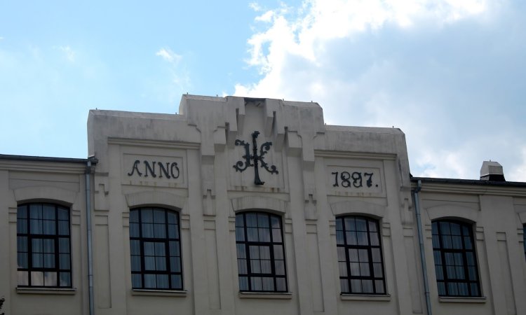 Juliusz Kindermann był synem znanego przemysłowca Franciszka Kindermanna, właściciela dużego zakładu wyrobów wełnianych. W 1892 roku stworzył własny zakład, produkujący tkaniny bawełniane. Frontowy budynek otrzymał imponującą formę, która nawiązywała potężnymi wieżami z krenelażem do budownictwa obronnego. Na środku fasady widnieje data budowy i monogram Juliusza Kindermanna.
