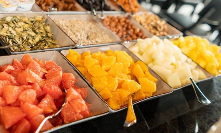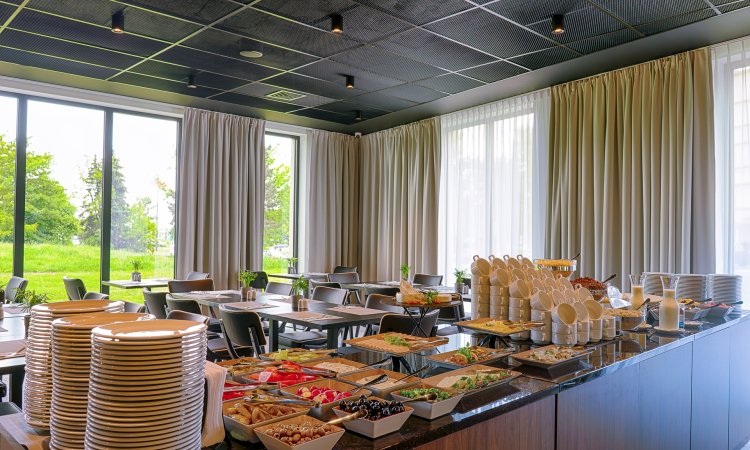 Codziennie rano w hotelowej restauracji serwujemy pyszne śniadania w formie bufetu. To aż 76 różnych produktów, w tym szeroki wybór dań ciepłych, wysokiej jakości wędliny i sery, świeże warzywa i owoce, desery oraz wiele innych.