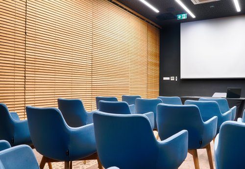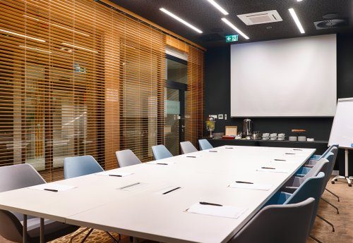 Kameralna sala konferencyjna może pomieścić do 25 osób. Jest to idealne miejsce do organizacji spotkań biznesowych i szkoleń.