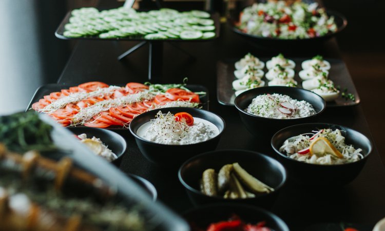 Codziennie rano w hotelowej restauracji serwujemy pyszne śniadania w formie bufetu. To aż 76 różnych produktów, w tym szeroki wybór dań ciepłych, wysokiej jakości wędliny i sery, świeże warzywa i owoce, desery oraz wiele innych.