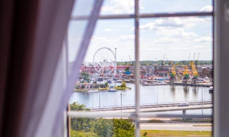 Z części pokoi roztacza się widok na malowniczą rzekę Odrę i port, z pozostałych – na imponujące Wały Chrobrego. 2 km od hotelu znajduje się Dworzec PKP, a lotnisko w Goleniowie położone jest w odległości 47 km.